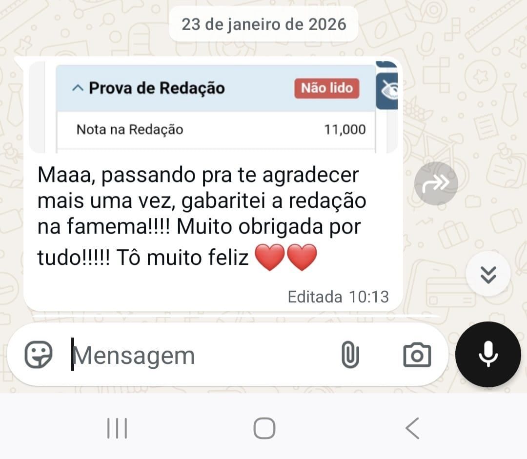 Há 17 anos, eu ajudo alunos — do zero ao avançado — a destravar a redação e escrever com mais clareza, repertório e estratégia.